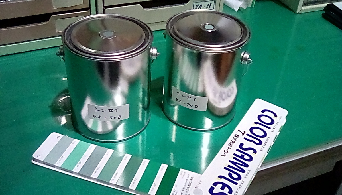 2019-11-14 調色 工作 塗料屋あっちゃんに調色してもらった(^ω^) いつも無理言ってゴメンね(^o^;) ブルーの棚を塗り替え中⤴ やっぱり工業系のカラーは、落ち着きがあってエエよね~(*´∀`)♪
