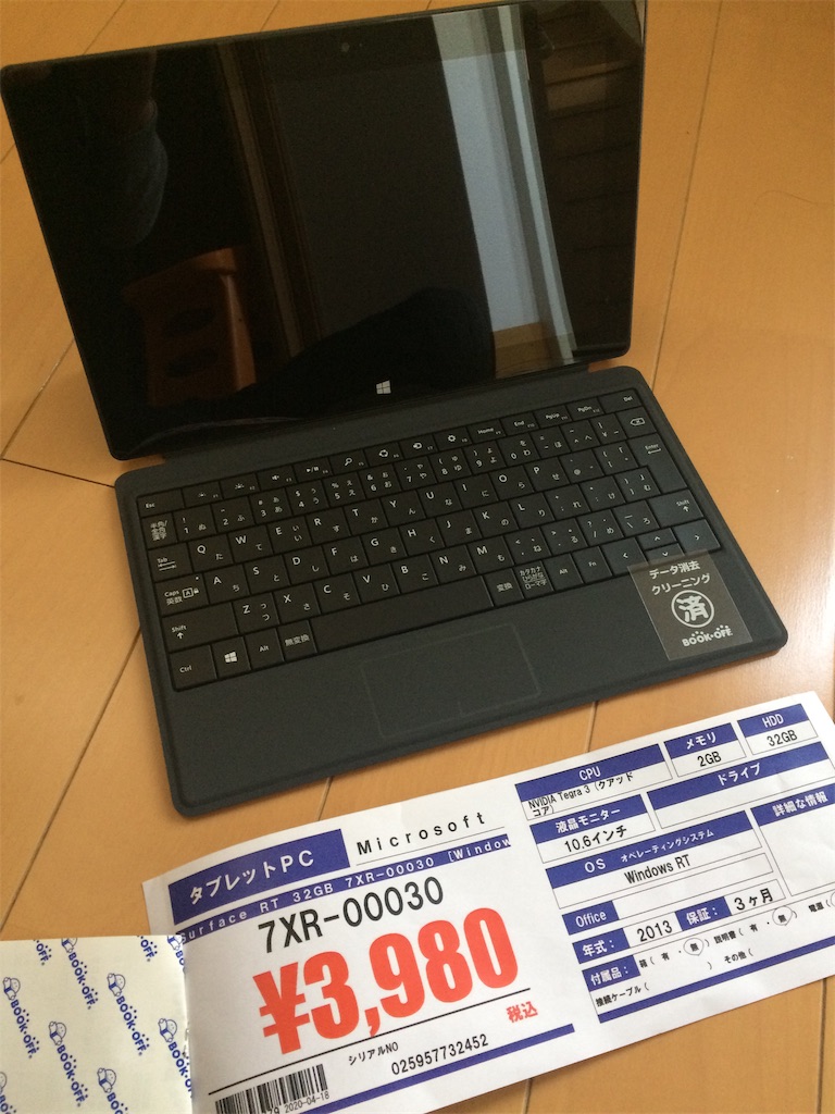 2020-04-19 使えるかな? ブックオフで思わず衝動買い!(^O^) めっちゃ古いタブレットPCやけど、 いちおうサーフェス(笑) 使い方も何も分からないけど、 知らない事を覚えるって、 めちゃくちゃ楽しくないですか?(^^) まあ三ヶ月の保証もあるし、 この値段でもオフィス付いてるし、 まあイイかな?と(*^^*)