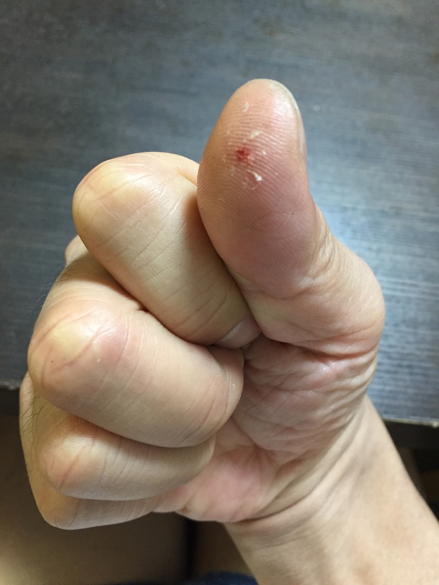 もはや、トゲがどこに入っているのか分からなくて、針で掘りまくって痛いと言う(笑)