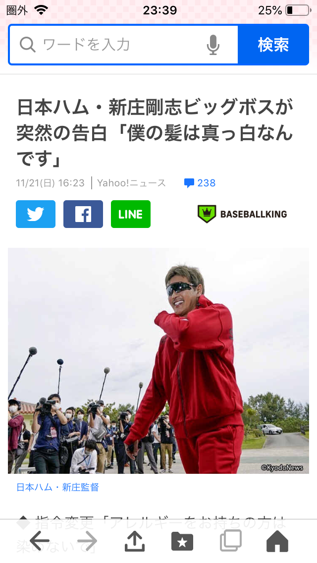 2021-11-21 真っ白 それは知らなかったです(^。^)ボクも耳の横から順番に、真っ白になっいってます(^◇^;)老化現象にショックを受けていますが、メンタルを鍛える為に染める事はしません!毎日 見ながらショックでも、それを受け入れる勇気が必要だなと思っています。が、てっぺんが薄いのは気になる(^◇^;)どこ触っても、すぐ地肌なんで(涙)剃り込み部も全く毛がないし!((((;゚Д゚)))))))ああ寒っ!(≧∀≦)(バンダナを髪に見立てて誤魔化してるけど、それも通用しなくなってきた・・・)