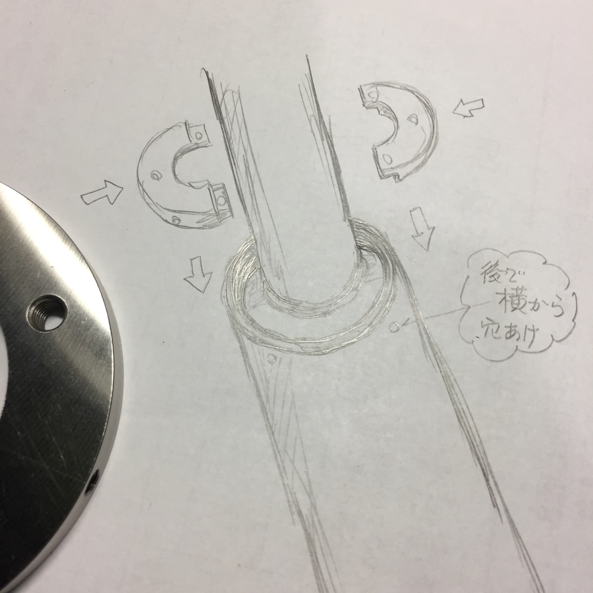 そこから、横にM6のネジを立てるのですが、あまりにもテキトーじゃダメなので、