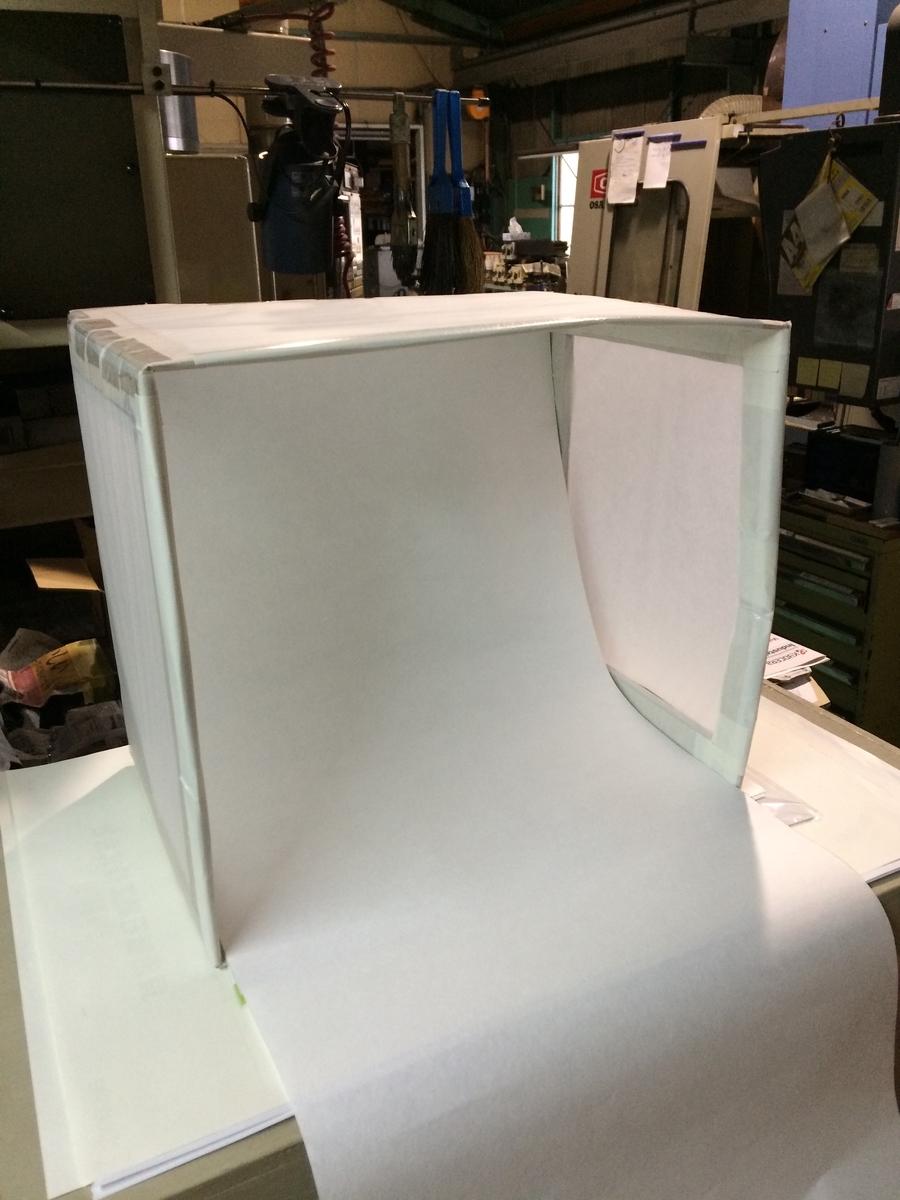 2022-08-25 スタジオ ミニスタジオが完成したので、早速 撮影してみましょう!(^。^)こんな風に垂らして、品物を置いて撮影するみたいです(^。^)どうでしょうか?(^。^)周りが暗くて、照明不足ですが、背景が ごちゃごちゃしてないので、綺麗に見えますね(^^)後は、照明によって出来る「影」が重要なんじゃないかと思います(^。^)って、後は腕次第なんじゃね?(笑)